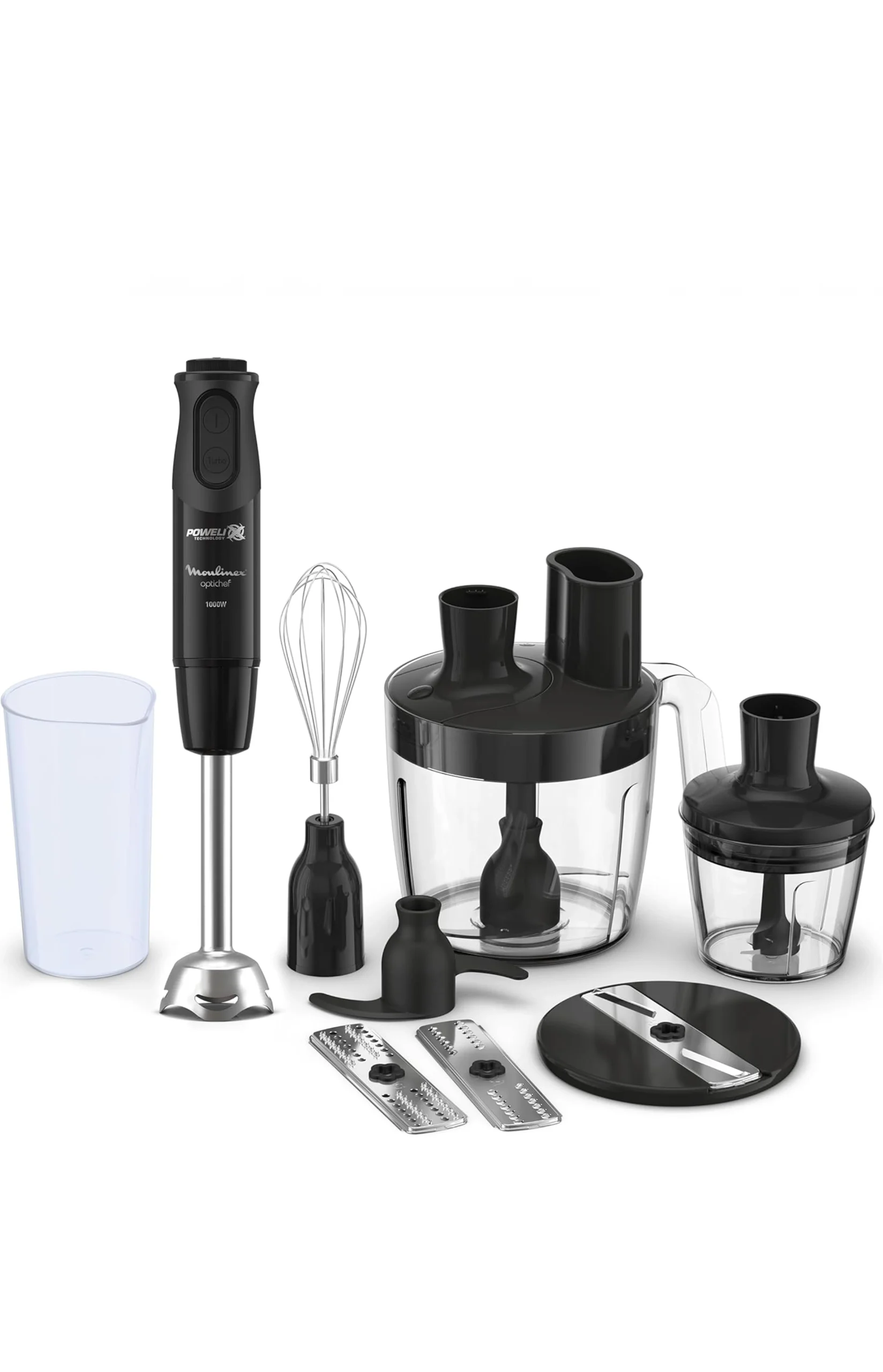 خلاط يدوي أوبتي شيف من مولينكس ، 1000 واط ، 15 وظيفة ، 2 لتر كبة ، مضرب ، أسود – DD6553EG.